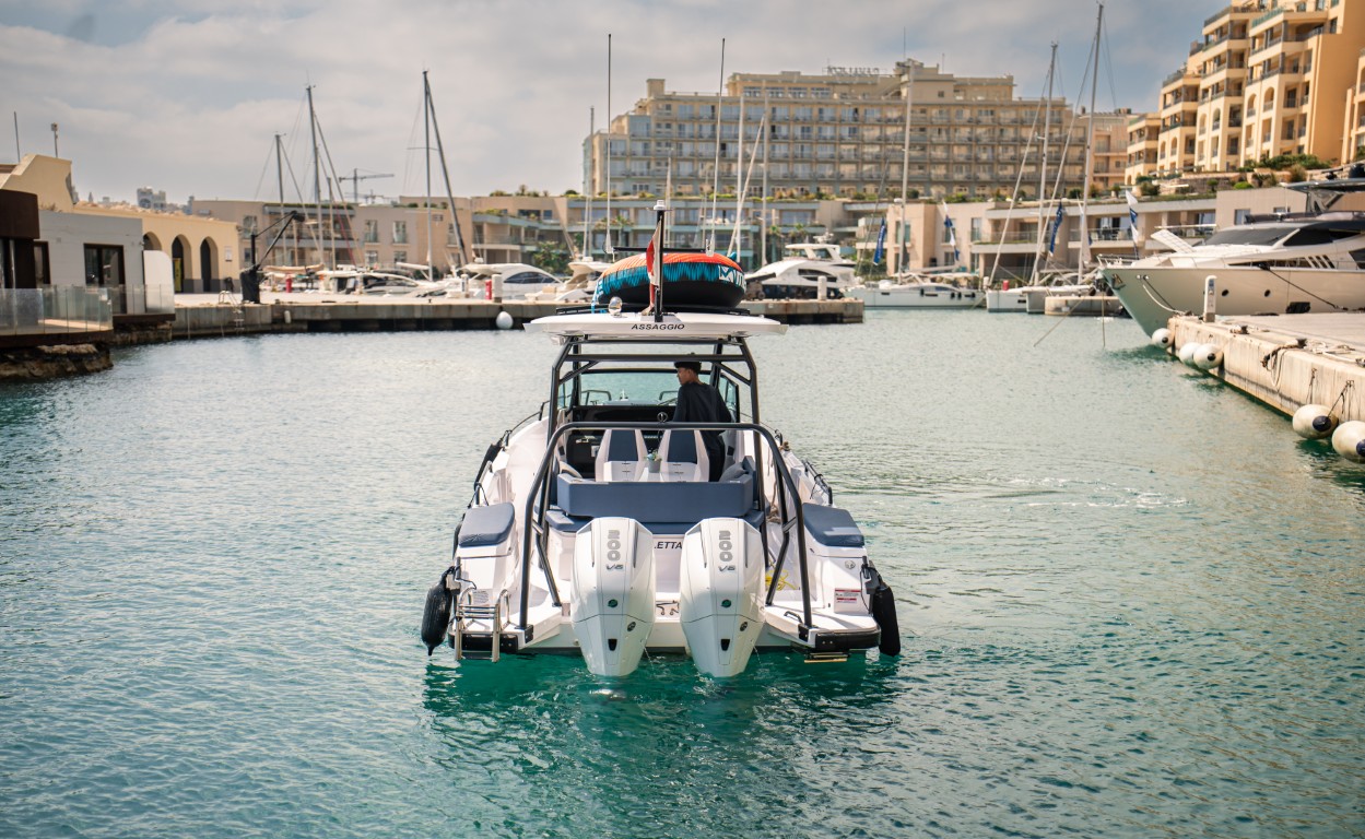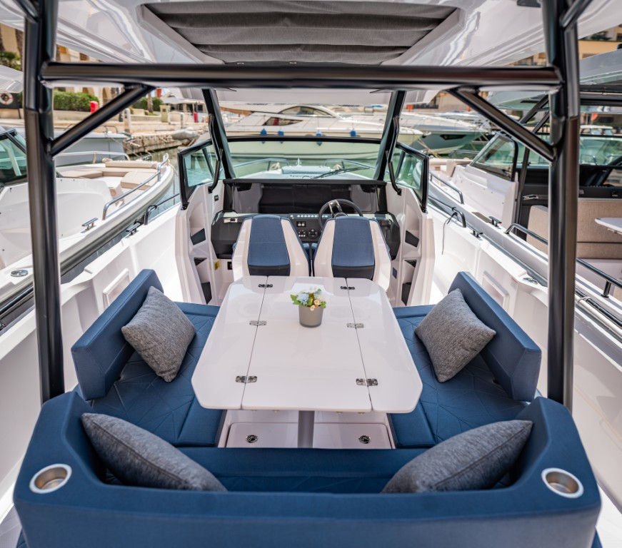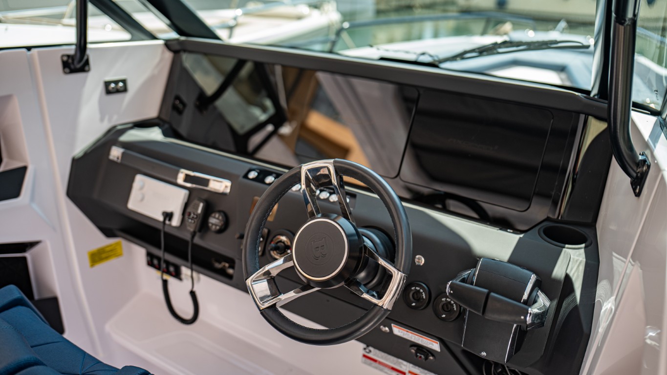 BRABUS Line Trim Package – ST: Includes BRABUS steering wheel, map pocket, black cleats, black cup holders, black light-mast, black hull logo, black ventilation grills, black handrails/pulpits, and dark audio grills.