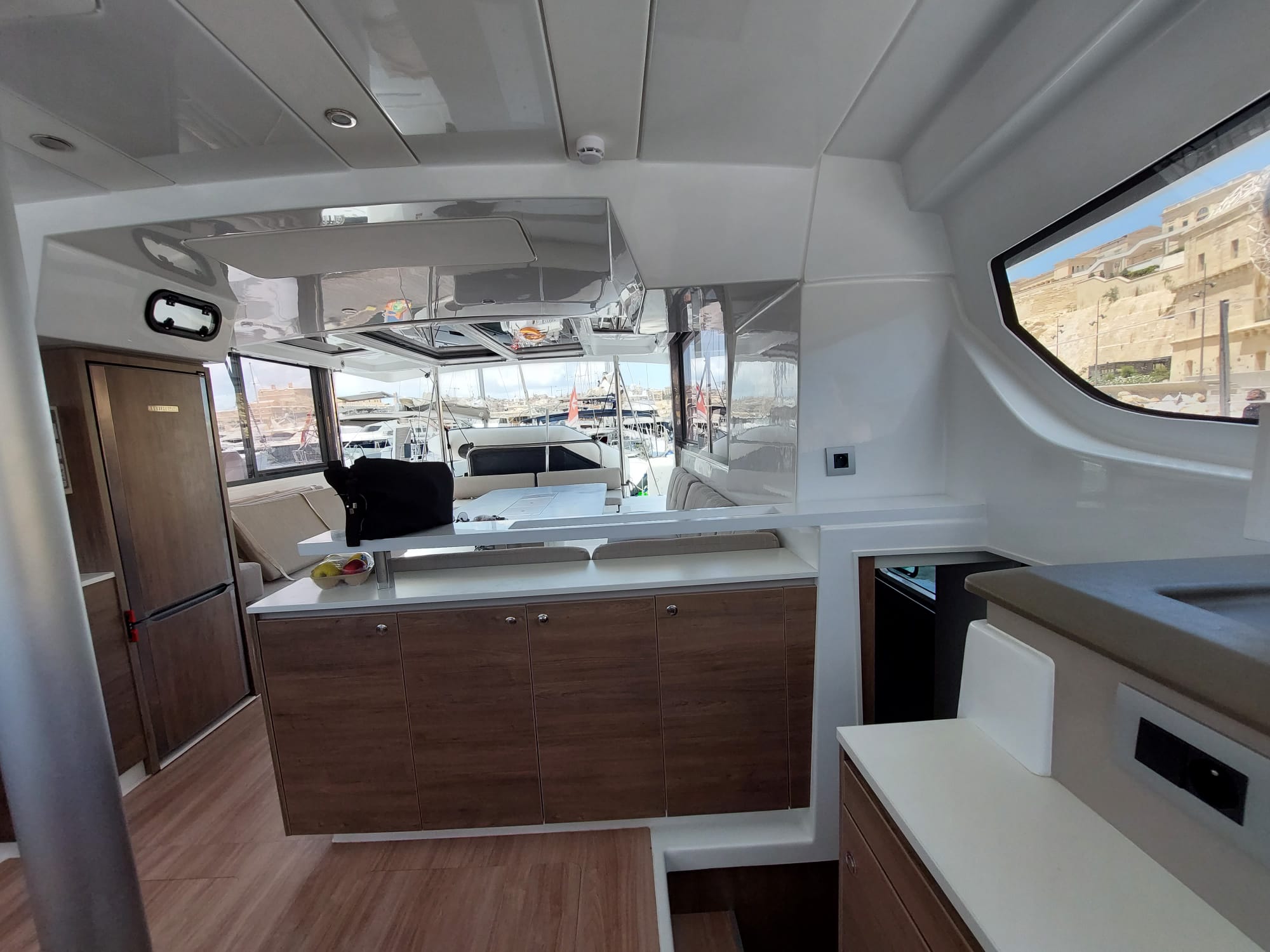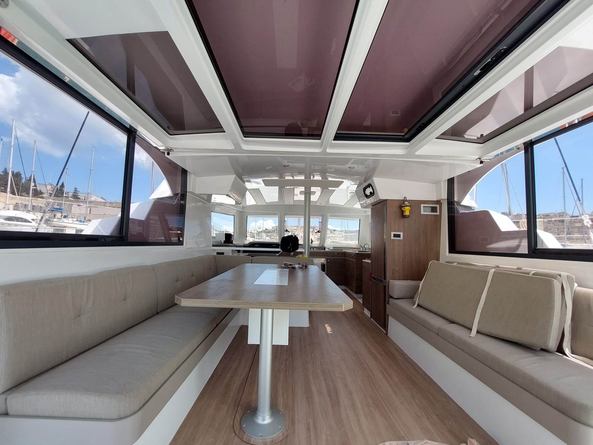 Conceived by Olivier Poncin and designed by Lasta Design, the new catamaran BALI Catspace combines all the latest innovations in cruising. The integral deck, efficient for sailing, allows you to move smooth around the various spaces, from the aft platform with bench seat to the forward cockpit with lounge and sunbathing area.