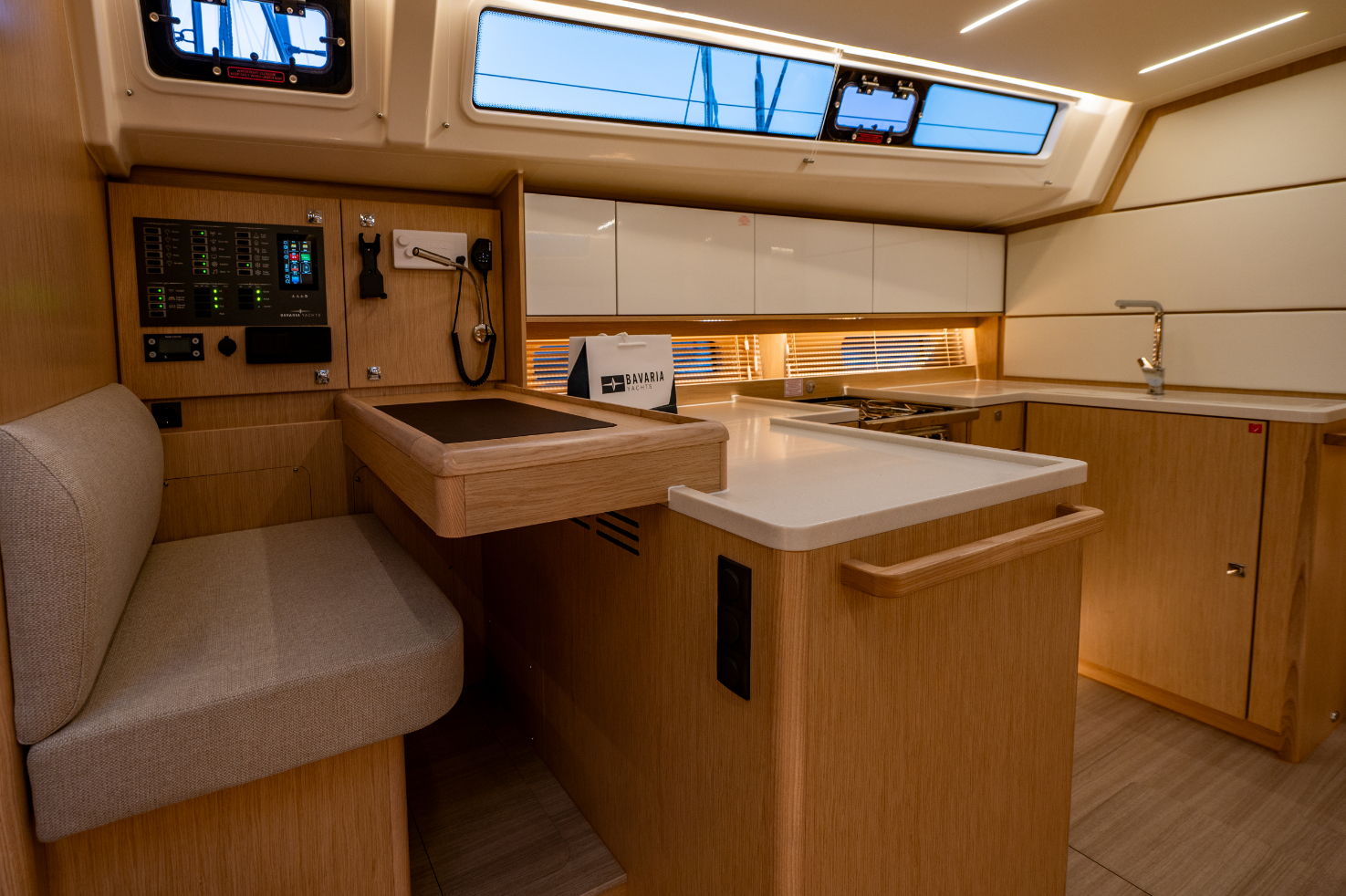 C1: Salon incl. navigation table and U-shaped galley on ps. big comfortable lounge and dining area stb side