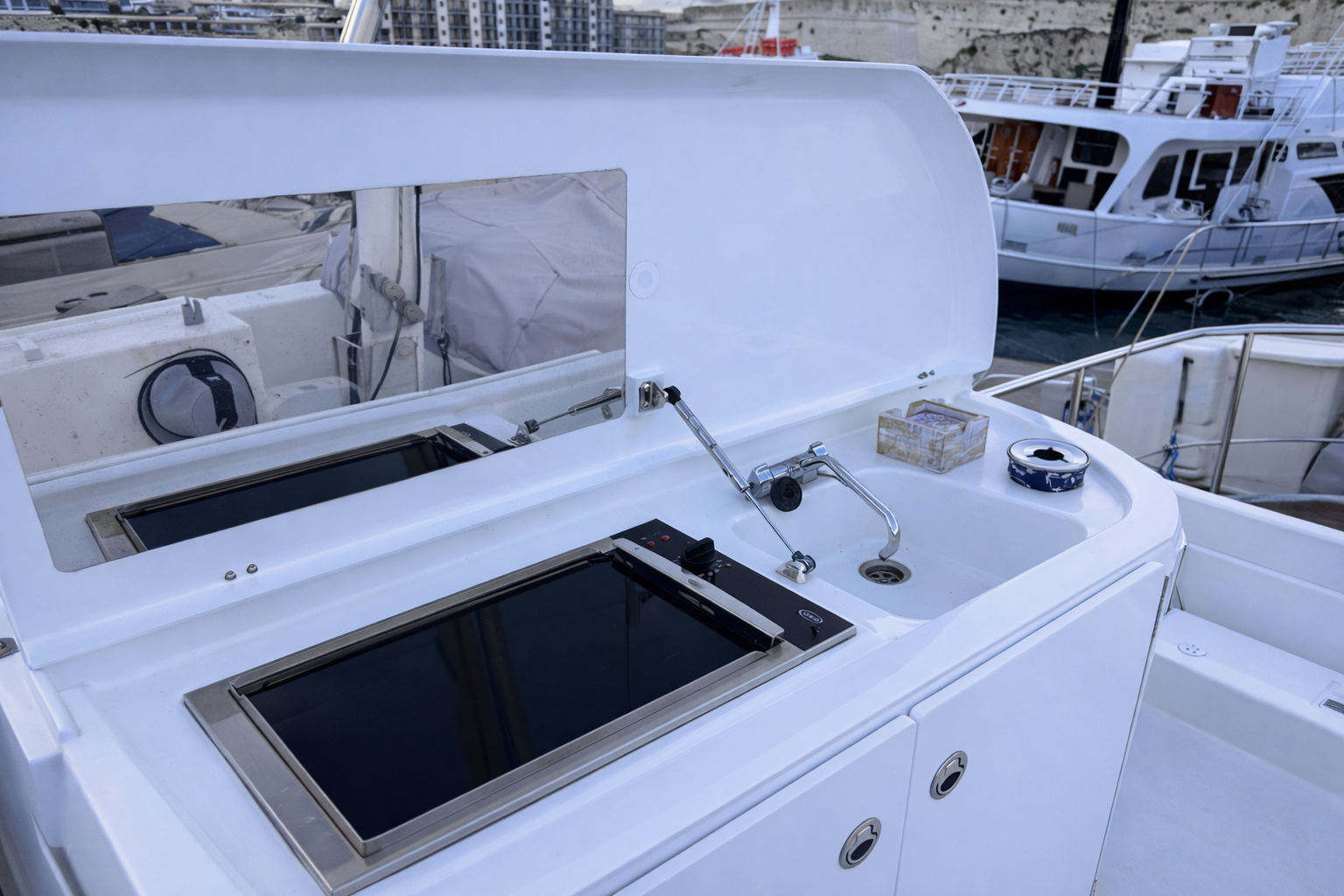 With a bright, spacious interior, practical layout, and a generous flybridge ideal for Mediterranean cruising, she is a reliable and economical yacht ready for immediate enjoyment.