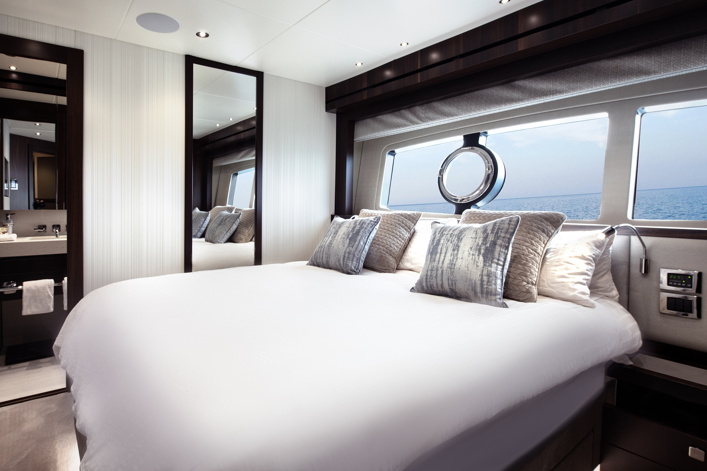 Accommodations include five beautifully appointed staterooms, highlighted by a full-beam owner’s suite with panoramic views located on the main deck, private lounge area, and luxurious ensuite.